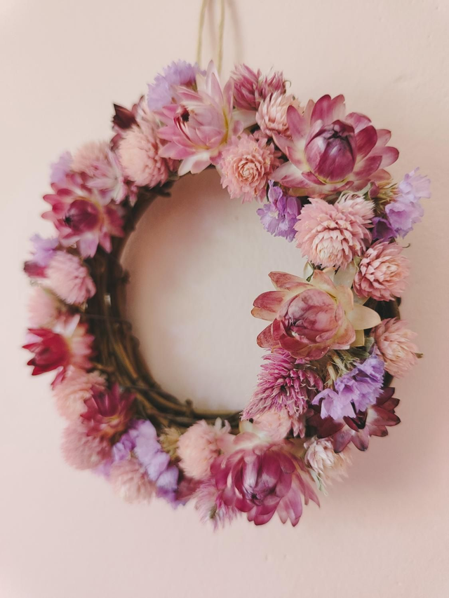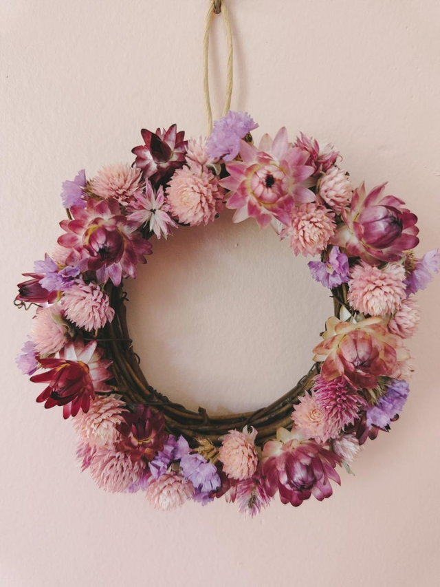 - Fleurs séchées : helichrysum, gomphrena, statice, celosie plumosus