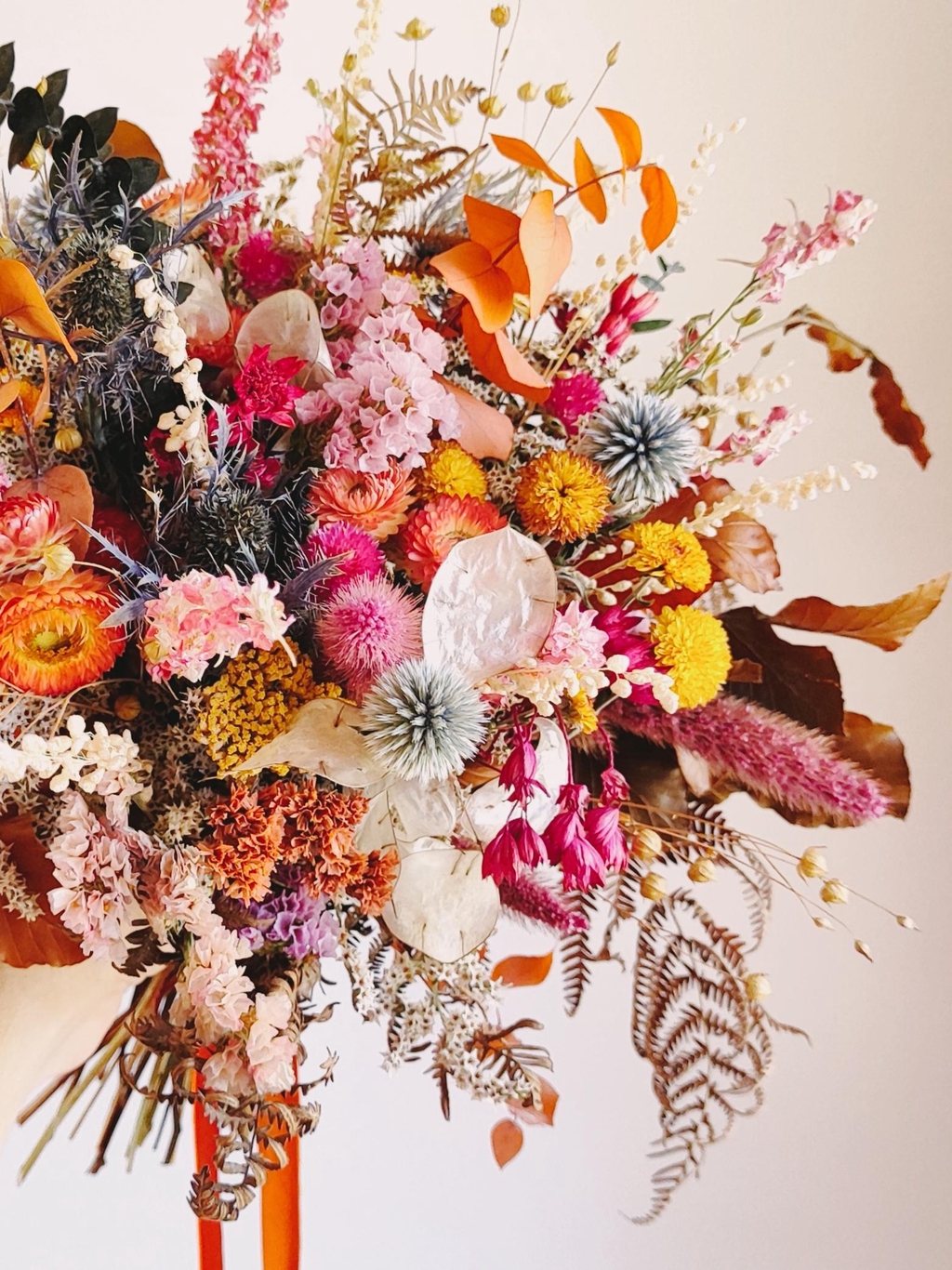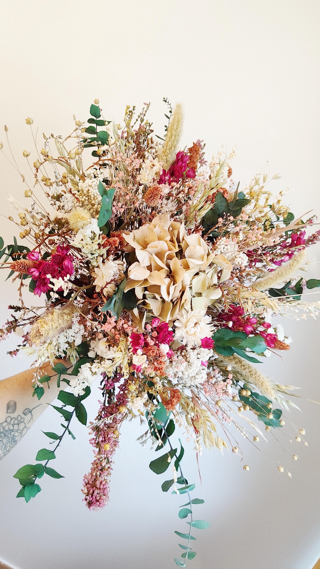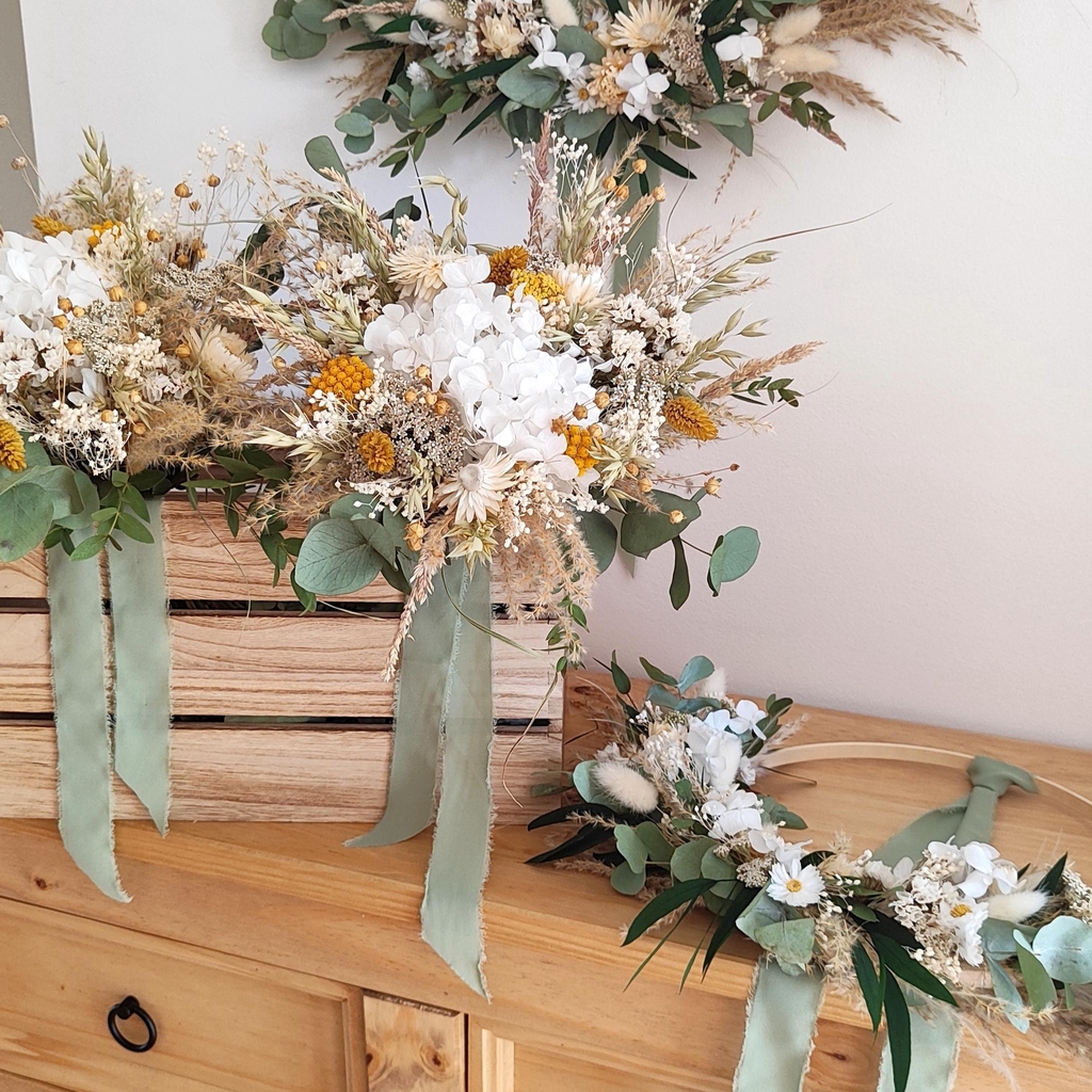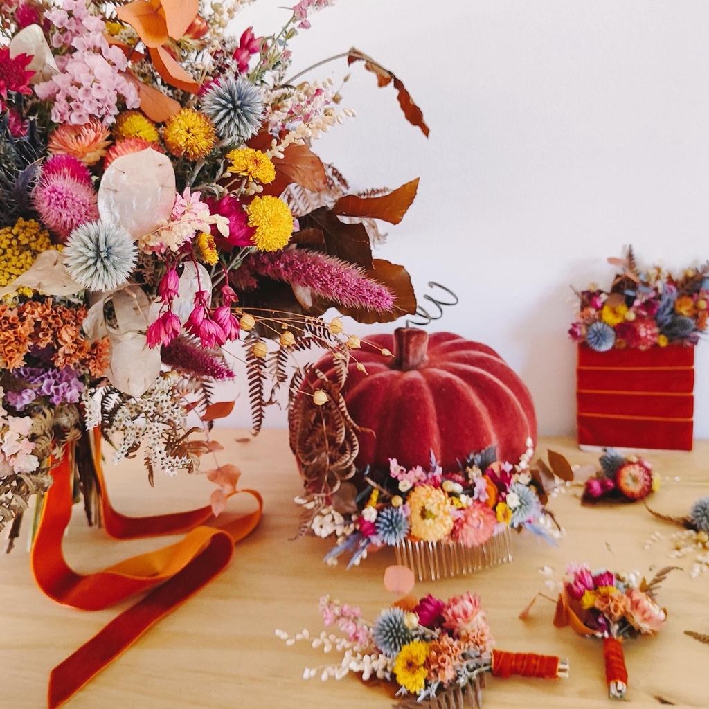 Le tout dans une démarche éco-responsable engagée : membre du Collectif de la Fleur Française, je travaille au maximum avec des fleurs cultivées en France, les plus locales possible. J'ai également une approche zéro plastique et limitant l'usage de mousse florale synthétique (no floral foam).