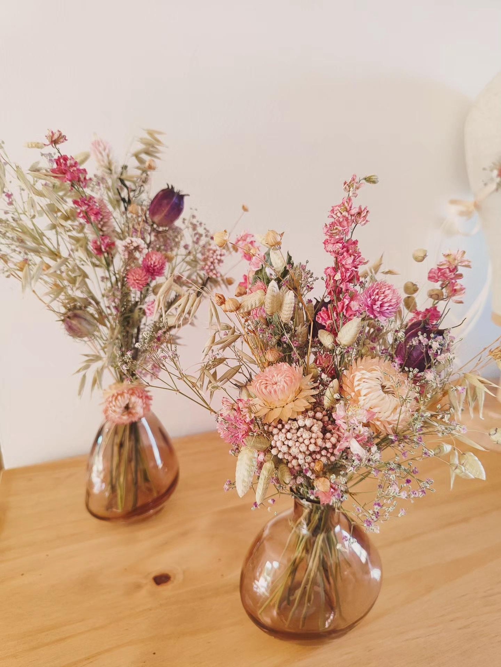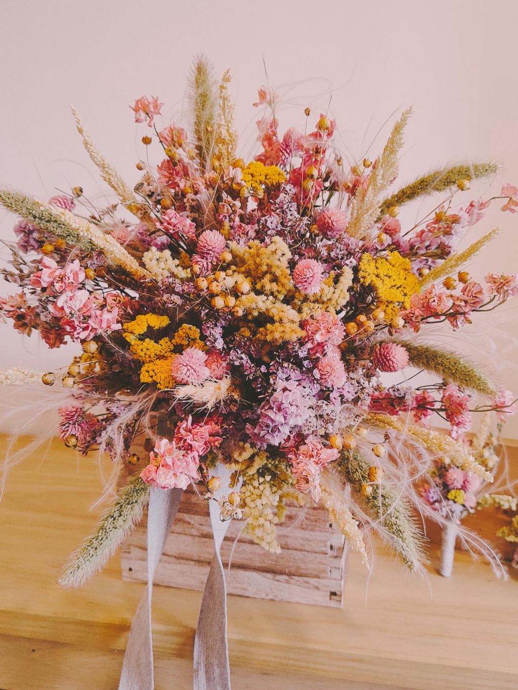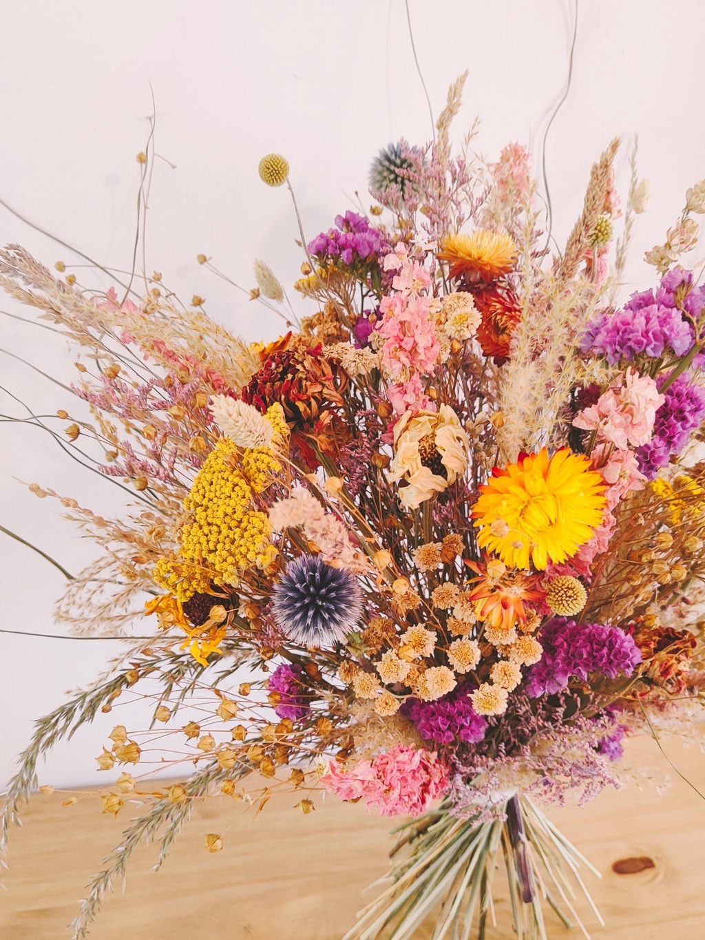 Le tout dans une démarche éco-responsable engagée : membre du Collectif de la Fleur Française, je travaille au maximum avec des fleurs cultivées en France, les plus locales possible. J'ai également une approche zéro plastique et limitant l'usage de mousse florale synthétique (no floral foam).
